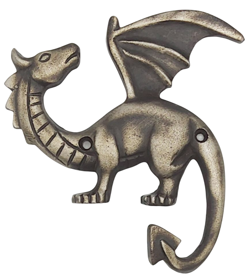 Perfect companion to our dragon shelf brackets. The detail is much, much better than that of our sand-cast items. Antiqued brass finish.