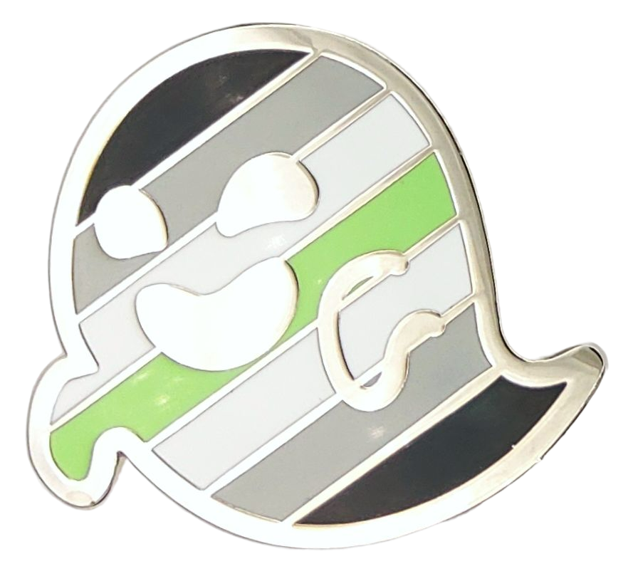 From our "Gaysper and Friends" collection. Gaysper is a rainbow ghost originally made famous by a tweet from a far-right conservative group in which he was featured as an "enemy," then quickly reclaimed by the LGBTQIA+ community. Now he and his friends are hauntingly delightful pins!