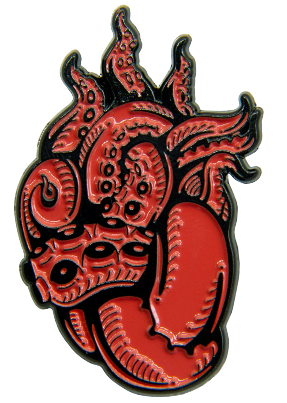 This big enamel pin features a red anatomical heart made from tentacles. Edgar Allan Poe meets H.P. Lovecraft - how could you go wrong?