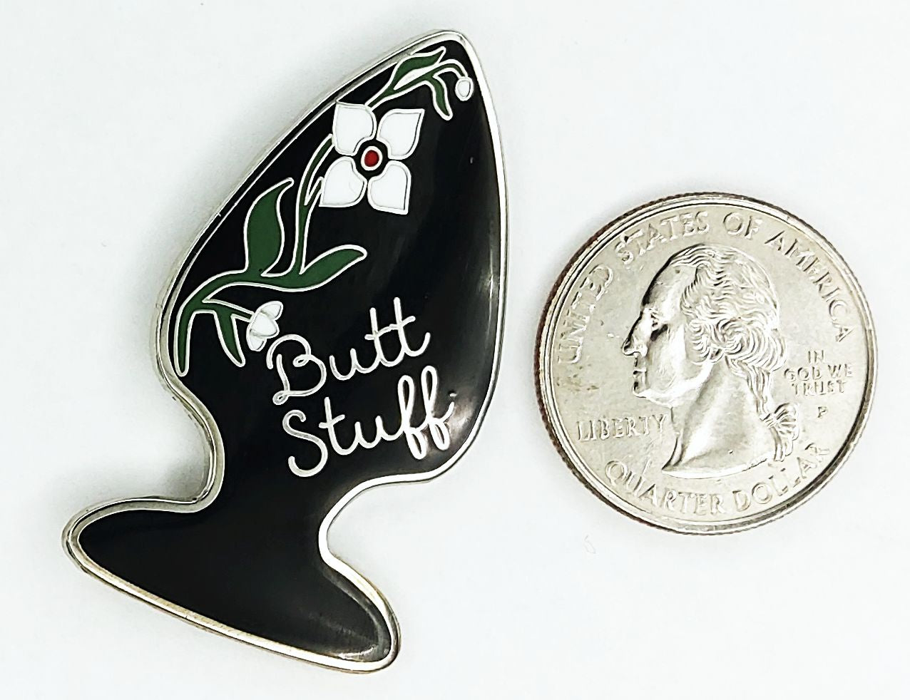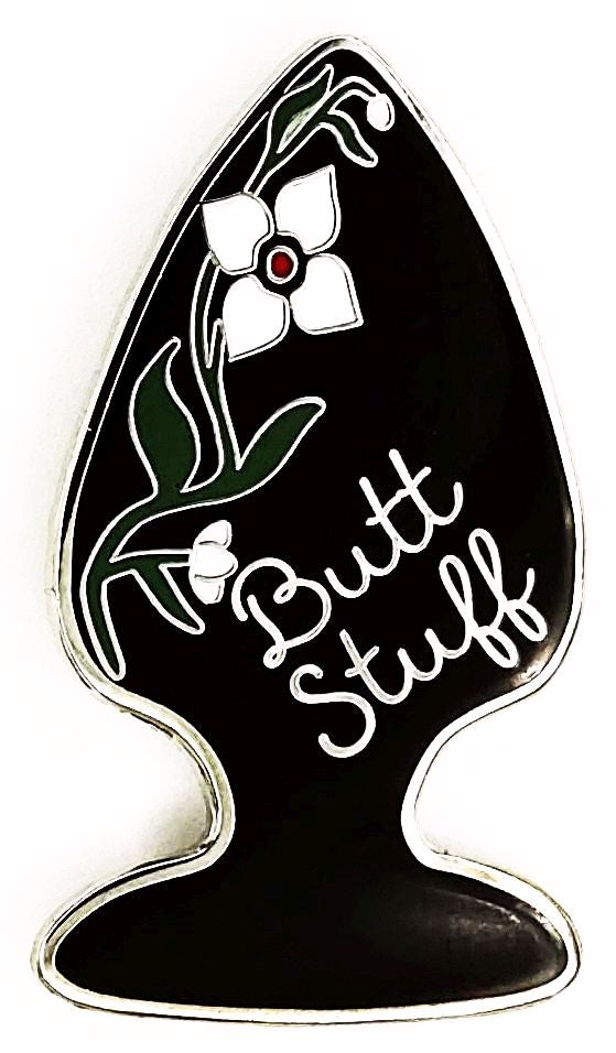 Are you into butt stuff? This pin lets you tell the world how you like it, with delicate flowers and a double entendre.