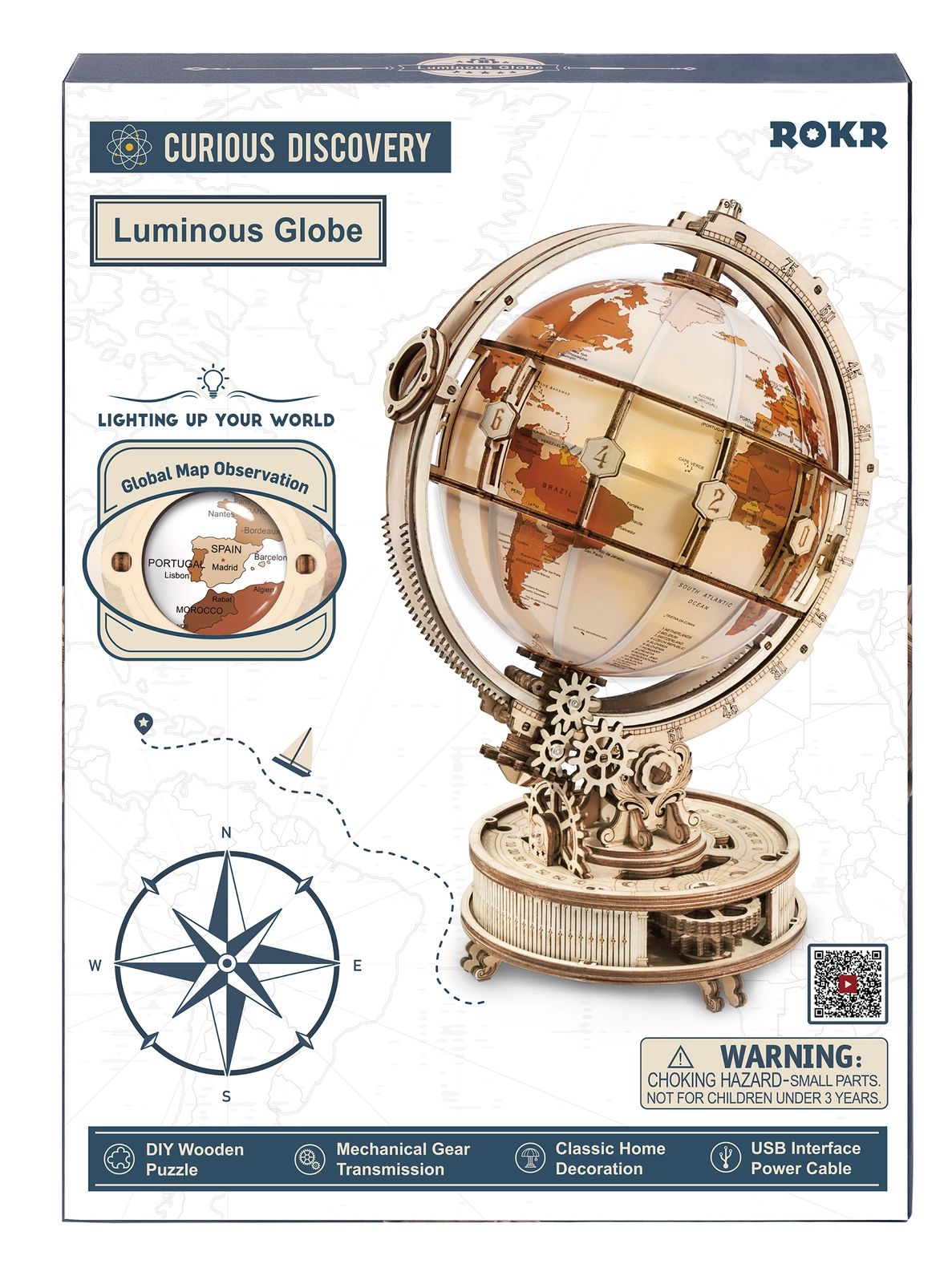 There is a gear in the base that rotates the globe in either directions, and a crank wheel on the side that moved a magnifying glass to any position pole-to-pole. The USB-powered light was brighter than I'd expected - it would indeed make a good nigh light.