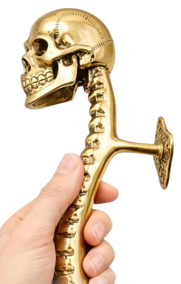 Spine with Skull Solid Brass Door Pull - Small