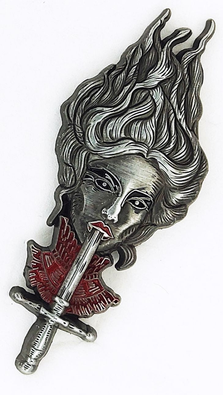This highly-detailed 3D sculpted pin is reversible, and is perfect for fans of the circus, freak shows, or just swallowing...anything.